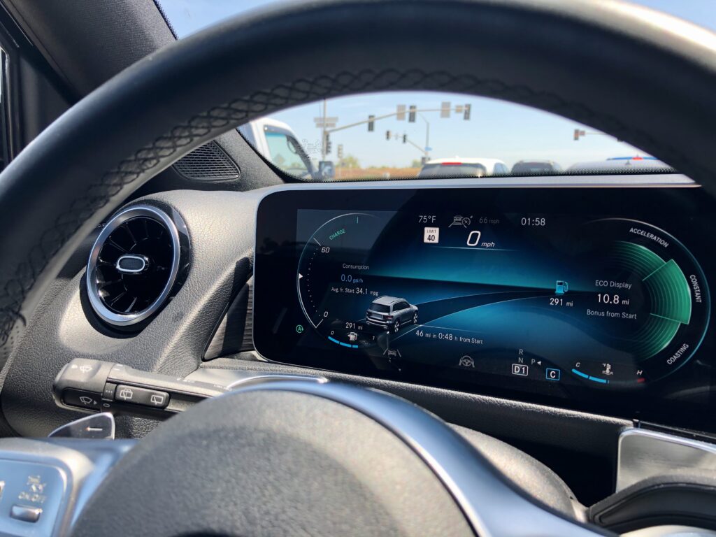 Mercedes’ engineering capably cancels the typical turbo lag and even the time-stealing launch of the dual-clutch automated manual transmission. The auto stop-start at idle function can be switched off, but the immediate response of the engine-restart makes it mostly unnecessary to do so.