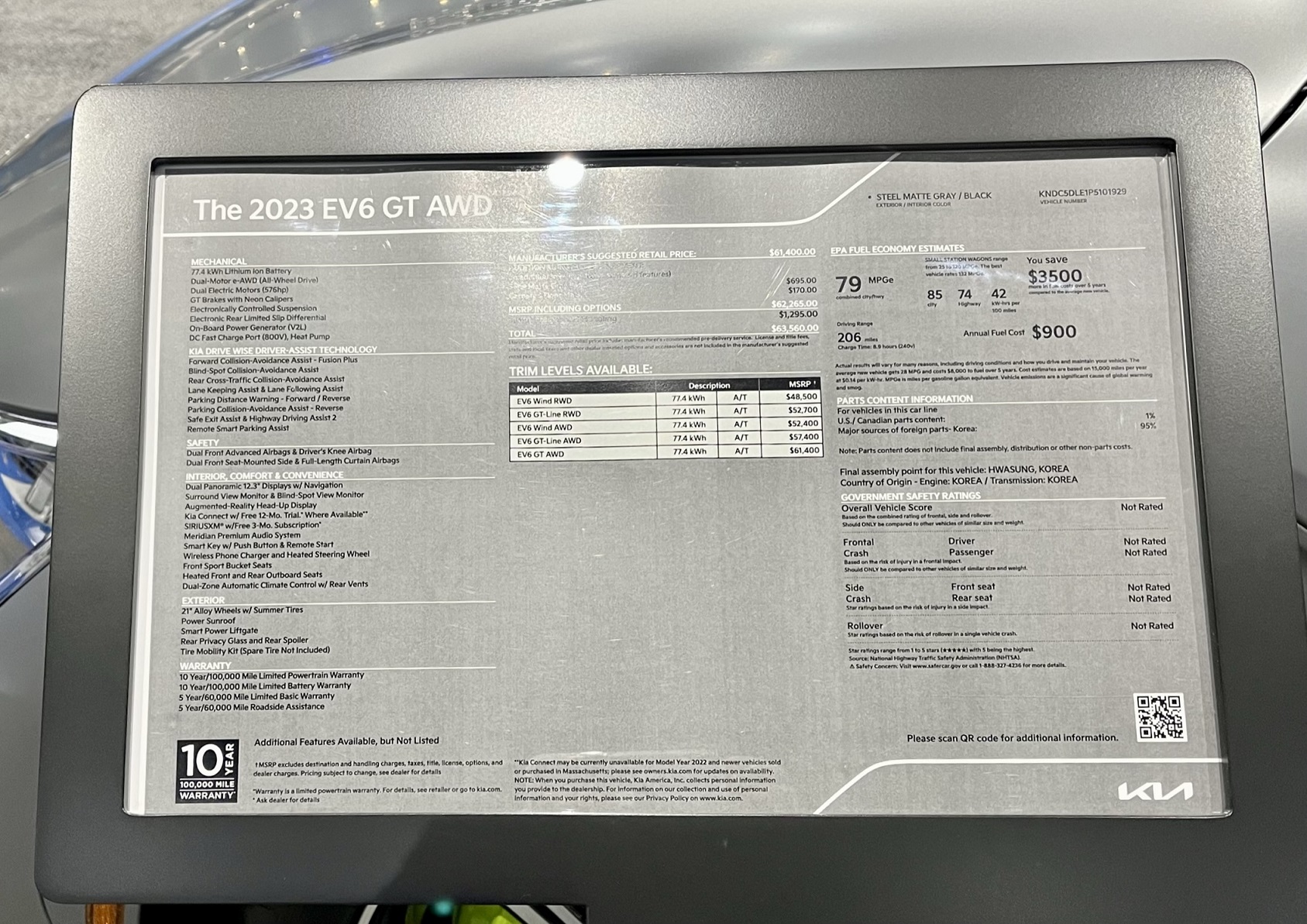 The 2023 Kia Telluride SX-Prestige X-Line tester was $53,825 with options for Wolf Gray paint ($495) and carpeted floor mats ($210). Pricing includes the $1,335 freight charge from West Point, Ga. (Photos by Mark Maynard)