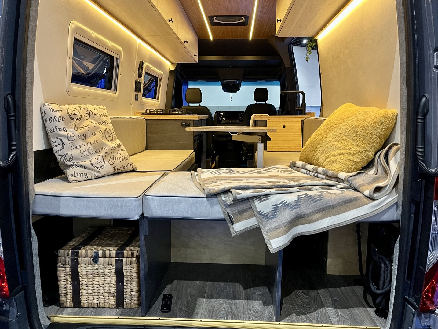 The cargo area is 4 feet wide and square with up to 7 feet in length with both rows folded, but the captain’s chairs prevent a contiguous floor, such as for sleeping. Behind the third row is 21 cubic feet of grocery capacity. And below the floor is some usable basement space, with storage for the roller shade.
